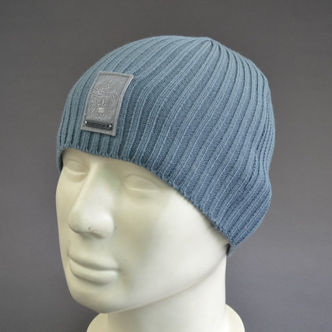 Gorro de invierno de hilo de tela de bambú, gorro de punto con parche de cuero y logotipo personalizado de fábrica al por mayor